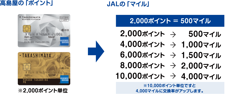 高島屋の「ポイント」とJALの「マイル」を相互交換します。