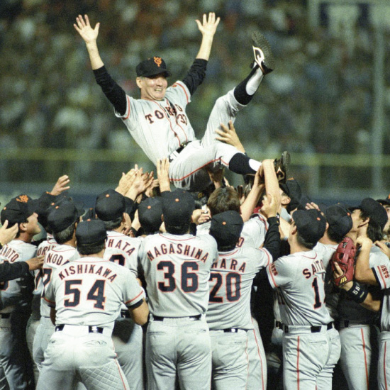 リーグ優勝を決め、巨人ナインに胴上げされる長嶋監督
