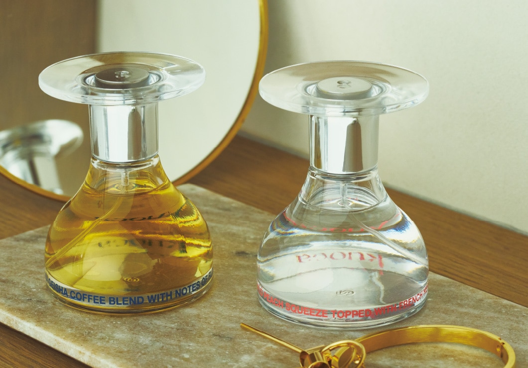 ワイングラスを想起させるデザインのオードパルファムは、個性豊かな香調が魅力。フルーティーとフローラルが重なる「ワイルドピーチ」、コーヒーの酸味と花の香りが調和する「ゲイシャコーヒー」。一滴に込められた美食体験のような香りです。