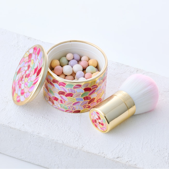 1987年の誕生以来、〈ゲラン〉のアイコニックな存在であり続けるフェイスパウダー。美しいケースの蓋を開け、カラフルなマットとパールのボールを混ぜ合わせて肌に乗せれば、肌色補正、メイク崩れ防止だけでなく、質感キープにも。ケースと同じデザインを施した専用ブラシは、柔らかな肌あたり。