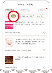「クーポン・特典」を押す