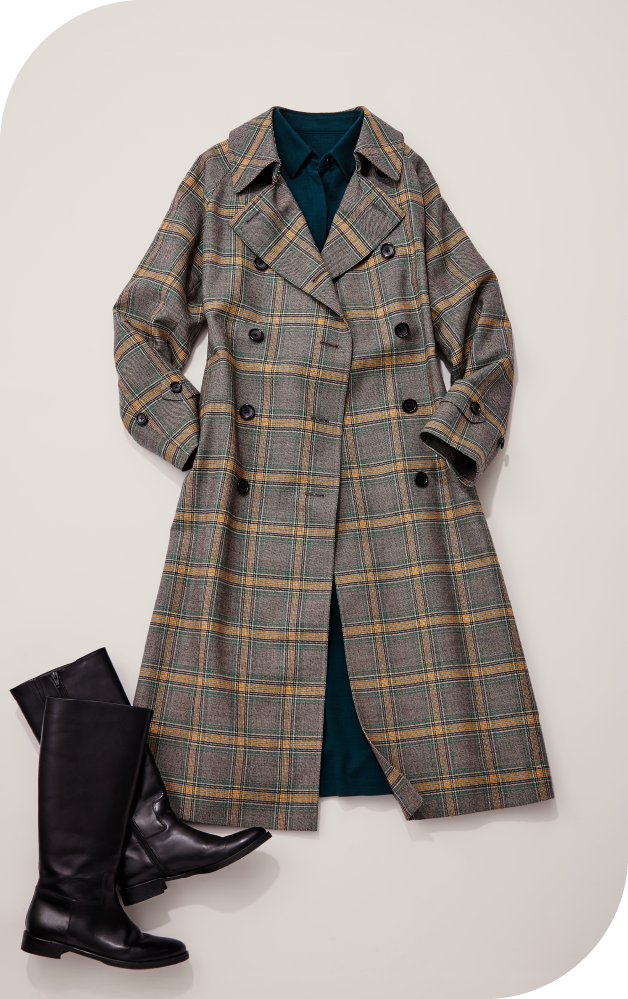 尾州で織りあげたウールチェックを贅沢に使用した、トラッドリッチなトレンチコート。程よく厚みのある素材と襟元まで閉められるデザインで寒い時期にもあたたかく着用できます。オーセンティックなブリティッシュデザインはシンプルなスタイルに奥行感を与え、流行に左右されず長く愛用いただけます。