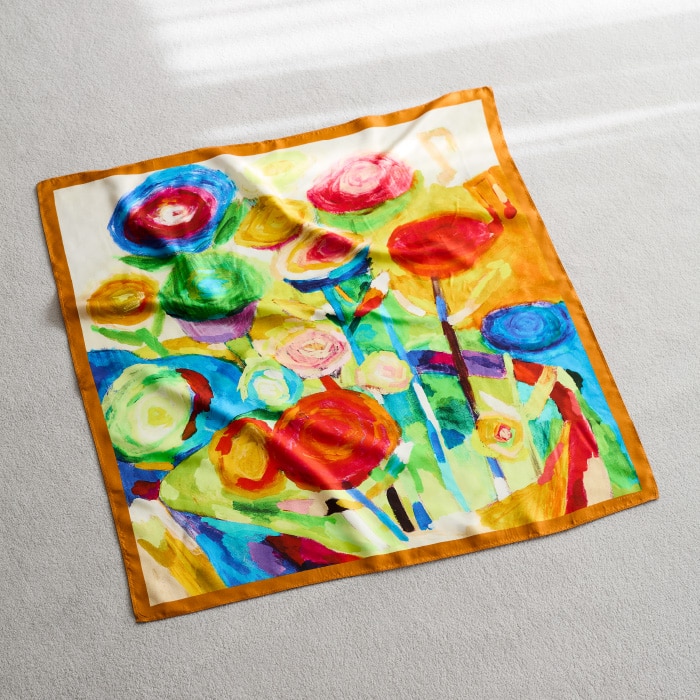 障がいのある作家と共に、新たな文化を創造するブランド「HERALBONY」。唯一無二の色彩と感性が息づくアートをプリントしたシルクスカーフが、装いに鮮やかな個性を添えます。