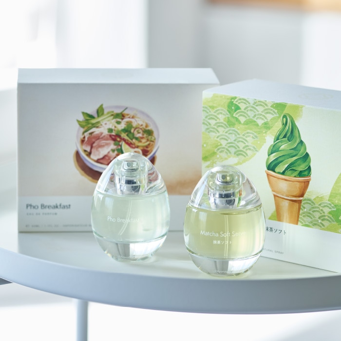「香りを通じて文化をつなぎたい」という想いを込めた、ベトナム発のフレグランスブランド。フォーや抹茶など、アジアの食文化に着想を得た香りが特徴。卵をモチーフにした香水瓶には、廃棄ガラスを再利用しています。