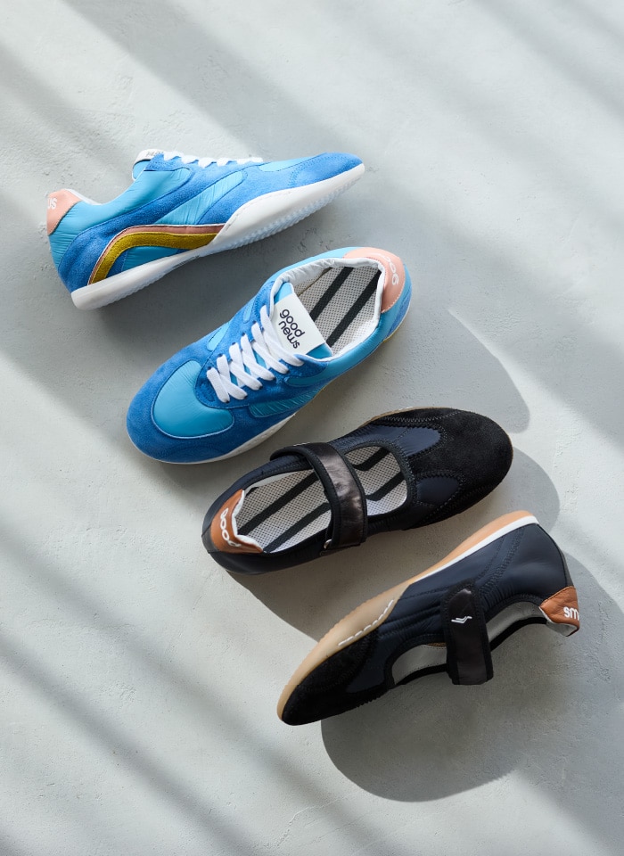 「世界に小さなGOODNEWSをもたらしたい」という思いから誕生した、ロンドン発のブランド。デッドストックスエードやリサイクルナイロンを使用した、レトロなスニーカーとメリージェーンタイプをご紹介。