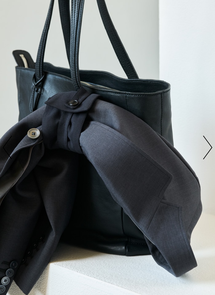 国際的な環境認証団体“LWG”のゴールドランクを取得したタンナーのレザーを使用。手触りが柔らかく、上品なシボ感が魅力のバッグ。