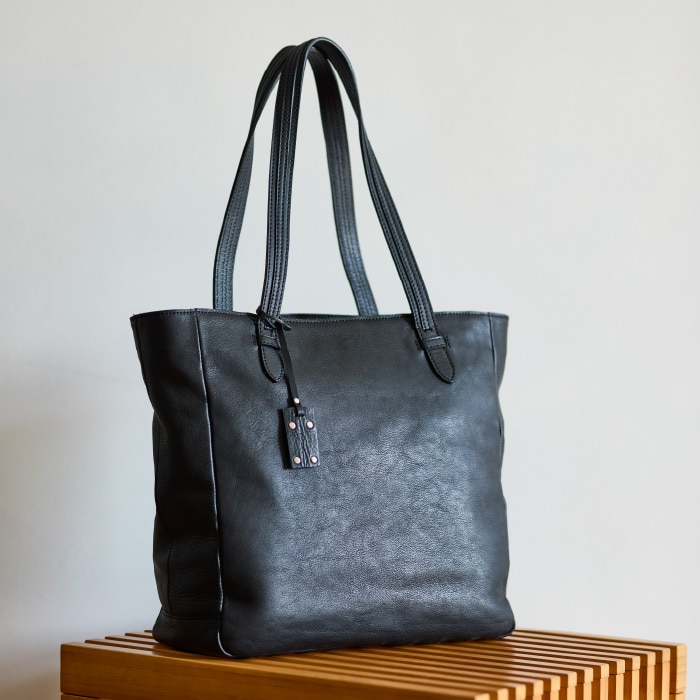 純国産にこだわった貴重なバッグ。北海道産の傷が少なく高品質な革を、姫路市でなめし、福島県の工場で一つずつ丁寧に縫製。原皮から仕上げまで、すべて国内で手がけています。