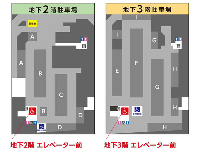 B3 / B2(車いす優先駐車場近くのエレベーター前)