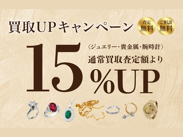 税込55,000円以上のジュエリーリフォーム加工代5%OFF/ジュエリー・貴金属買取査定相場10%UP