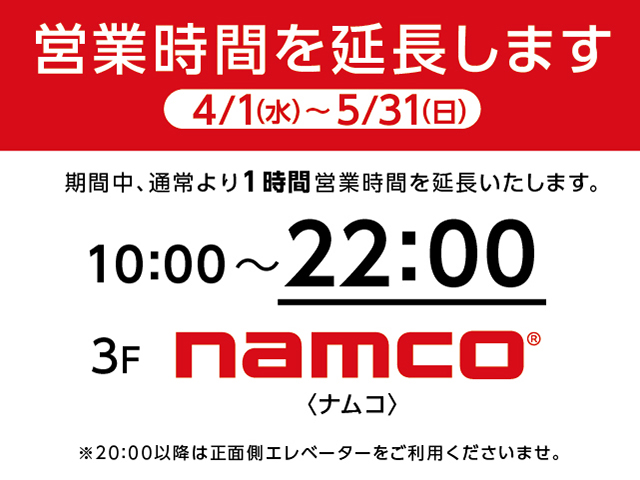 4月1日(水)~5月31日(日)の期間、以下の通り営業時間を延長いたします。