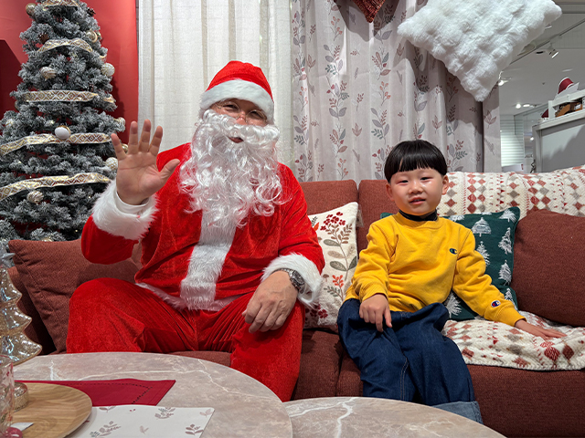クリスマスの飾りつけをしたお部屋で、サンタクロースと一緒に記念撮影しよう!