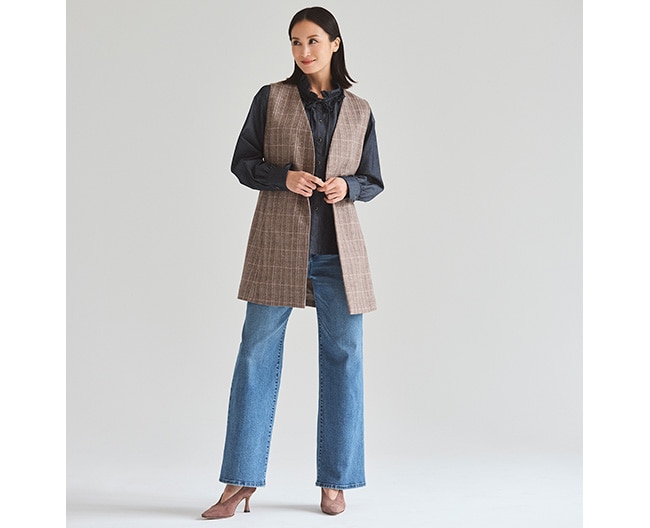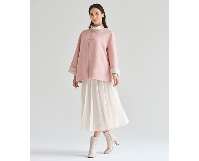 今季のレリアンでは軽やかなリバー素材のアウターをはじめ、色ずく街並みに映えるシックな