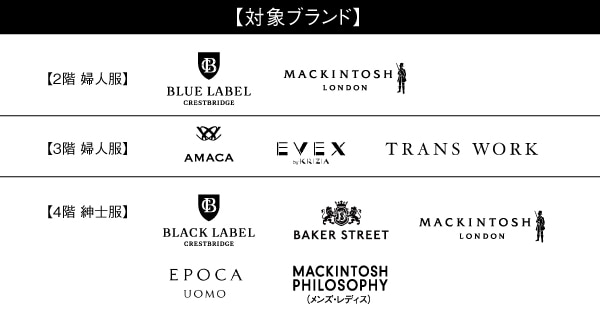 ■期間中、対象ブランドにて税込33,000円以上お買上げのお客様に、「次回使えるクーポン(3,000円)」をさしあげます。