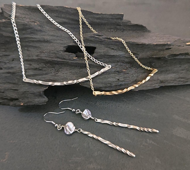 淡水パールや藍染めを施したインディゴパールを使用したジュエリーやハンマリング加工による、真鍮・シルバー950素材を使用し1点1点手作りしたアクセサリーを多数取り揃えております。