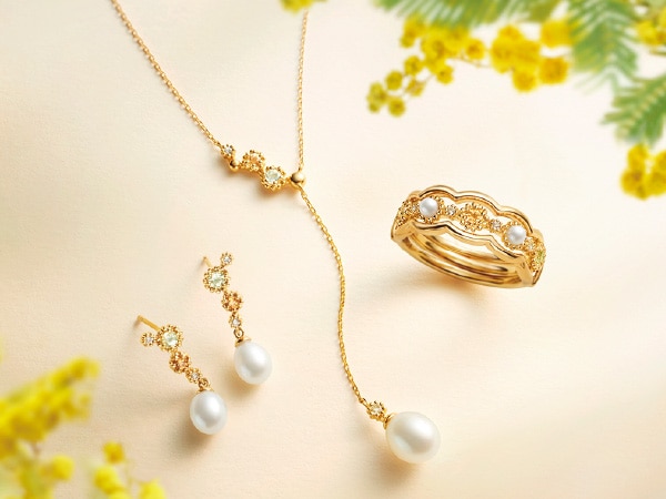 ※いずれもSV+YGコーティング、パール、クオーツ、シトリン、トパーズ(リングのみ+ペリドット※ピアス・ネックレスには入っておりません。)