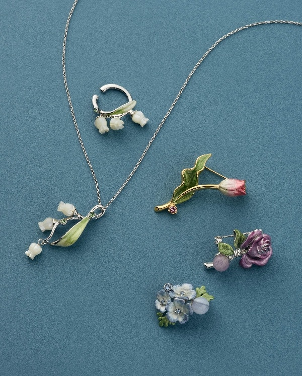 うるわしい春の花々を繊細に表現したアクセサリー。まるで香りが漂ってきそうな、花本来の美しさを忠実に再現した、クラフトマンシップに溢れるコレクションです。