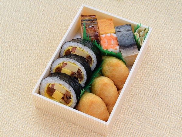 [古市庵]詰合せ3種の押寿司と笑福巻助六(1折) 1,026円〈各日数量限定〉