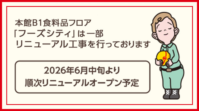本館B1食料品フロア「フーズシティ」一部リニューアル工事のお知らせ