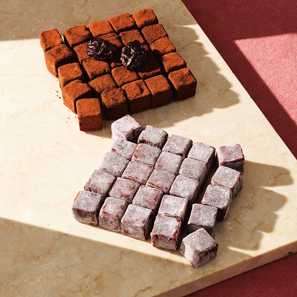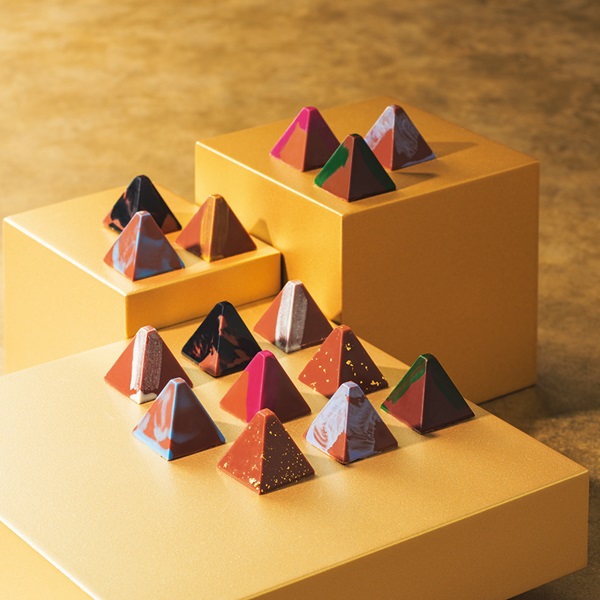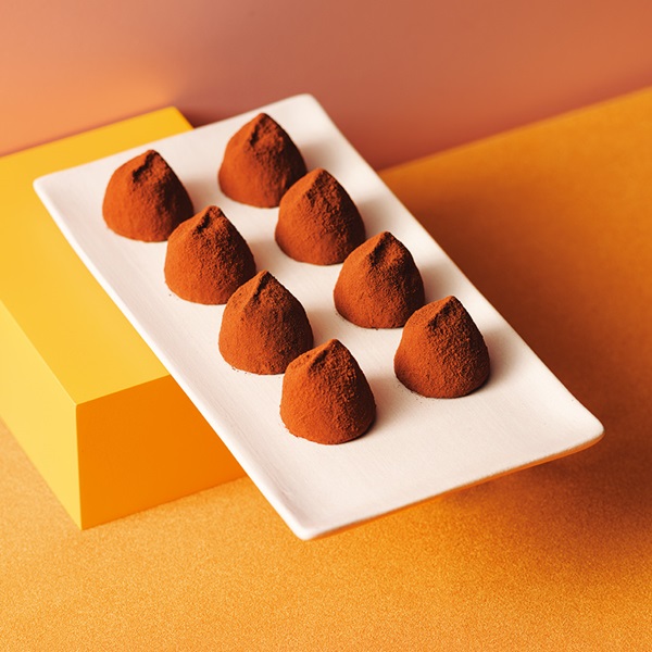 〈シェ・シバタ〉甘く優しいキンモクセイの香りにマンダリンオレンジを合わせた、フルーティーな味わいのブレンドガナッシュ。