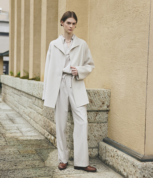 リボンストール付きノーカラーコート