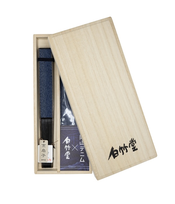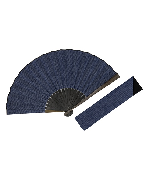 ヘリンボーン柄デニムをあしらい、ファッション性と耐久性を兼ね備えた扇子です。