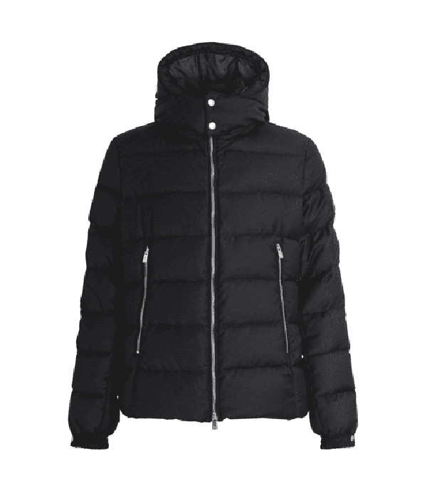 首元までカバーする、ハイネックのフードデザインがポイントに。