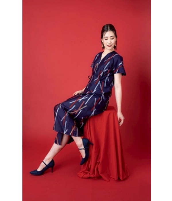 銘仙のお着物を一着まるごと贅沢に使用したワンピース。