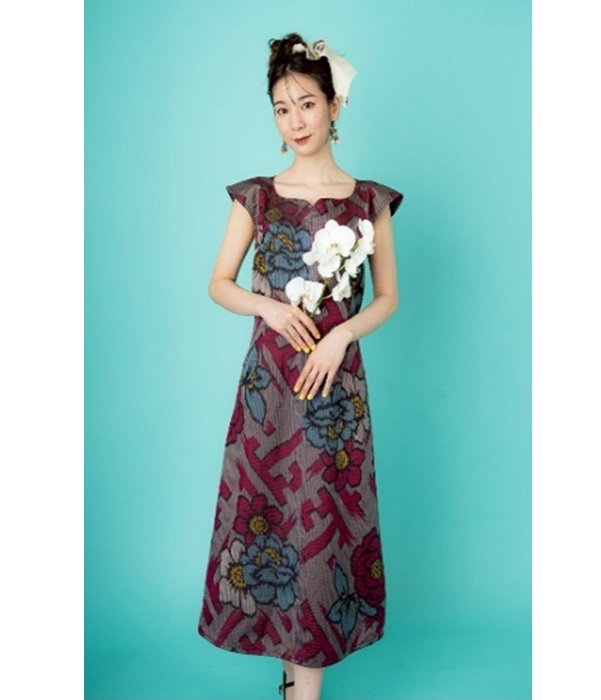 銘仙のお着物を一着まるごと贅沢に使用したワンピース。