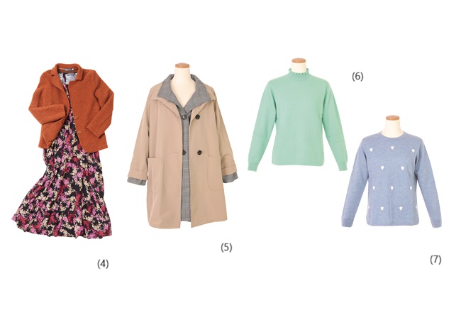 (4)婦人ニットウールジャケット 11,000円 / プリントワンピース 16,500円