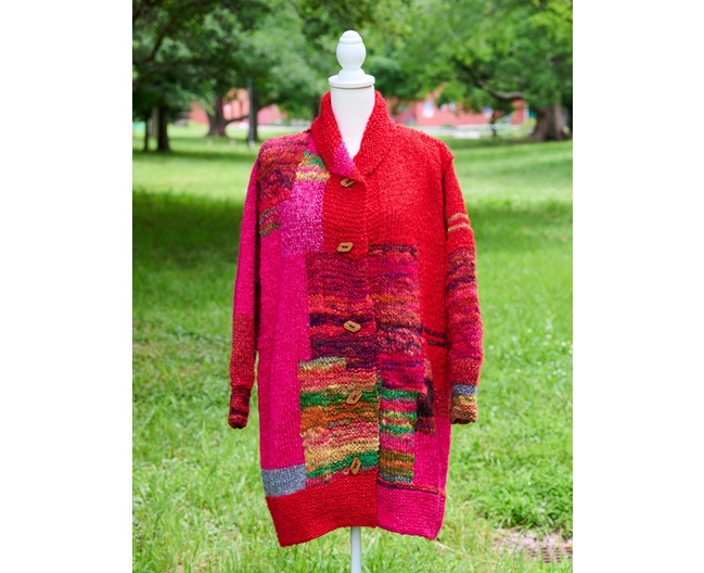 手染め、手紡ぎによるオリジナルの毛糸とベスト・カーディガン・コートなどニット作品約150点を展示・販売いたします。