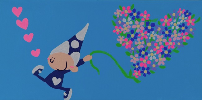 五十嵐岳氏のオリジナルキャラクターの「ELF」や、人間を描いた「HAPPY PEOPLE」を軸にし、 様々な企業やブランドとのコラボレーション作品も多く生み出されています。 ほのぼのとした優しく鮮やかな色使いが施された絵画は、子どもたちだけではなく、 大人も魅了し多くのファンから支持されています。