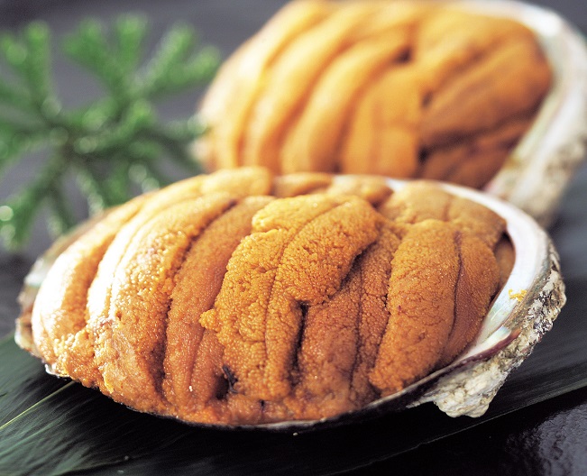 うにをアワビの殻にのせ、焼き上げた一品。うにの甘味と風味をお楽しみください。
