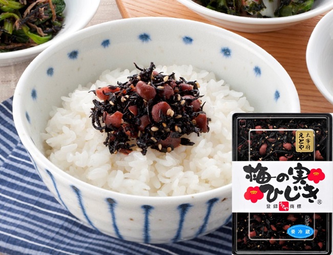 しそ風味の肉厚ひじきとカリッとした梅の実の食感が爽やかな、ご飯がすすむ逸品です。