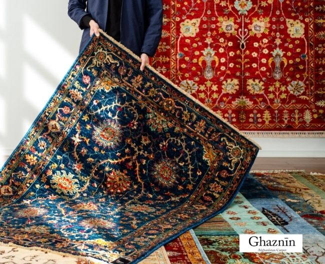アフガニスタンのガズに州で生まれた「Ghaznin-ガズニン-」は、草花をモチーフにした華やかな手織りのウールじゅうたん。