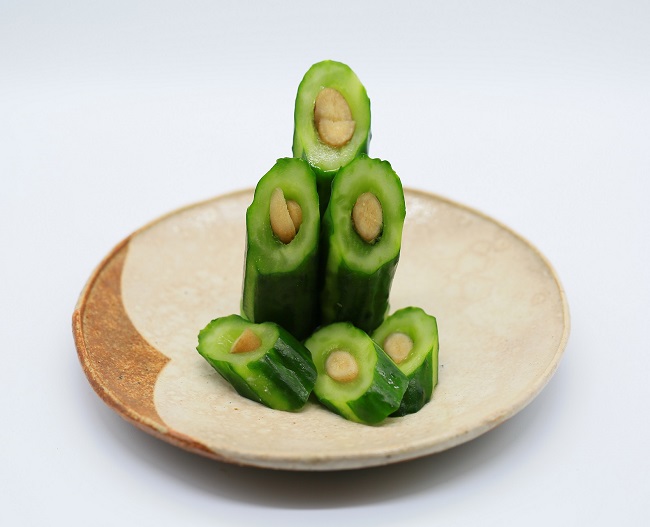 1番の人気商品です。胡瓜の中に、ごぼうを青じそで巻いて詰め、さっぱり味に仕上げました。
