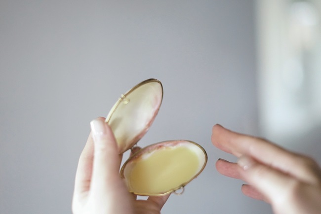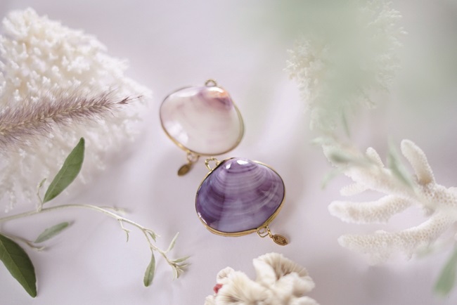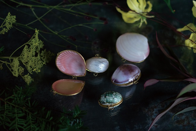 シェルコンパクトは天然の貝殻を使用しているため、すべて一点もの。ソリッドパフュームの香りによって、異なる種類のシェルコンパクトに入っています。