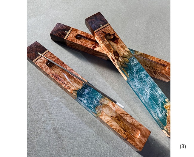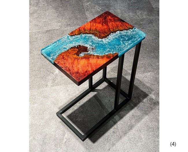 また、使用しづらい歪な形状の木材を樹脂と組み合わせることにより、インテリアへと再生。
