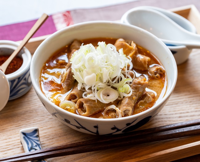 秘伝の赤味噌で6時間じっくり煮込んだ上州モツはとろけるほどのやわらかさ。
