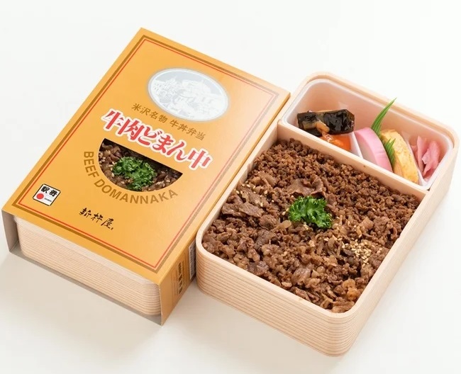 特製のタレで煮た牛肉煮と牛そぼろ煮をご飯の上に乗せた牛丼風の弁当です。