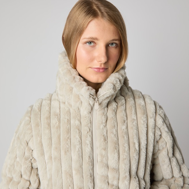 世界中で羽毛を搾取され続けているダックたちを守るため、リアルダウンの代わりに独自開発した高性能素材を中綿として使用しています。