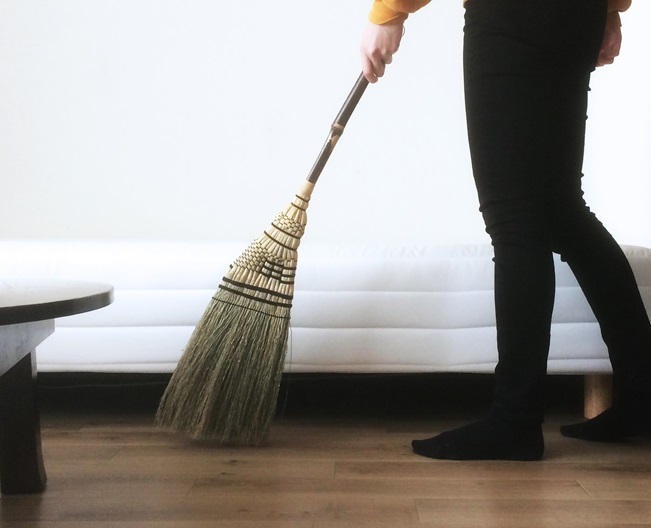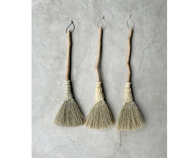 製造はすべて株式会社 「まちづくり山上」の職人が手作業で行い、穂先は素材の柔らかさを活かすために一本ずつ丁寧に揃えています。しなやかで折れにくい穂先は中津箒ならではの特徴で、使い込むほどに手に馴染みます。畳やフロ-リングを傷つけることなく、チリやホコリをやさしく掃きだしてくれる箒です。