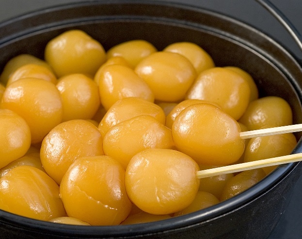 山形名物玉こんにゃく。くせになる甘辛ダレが特徴です。