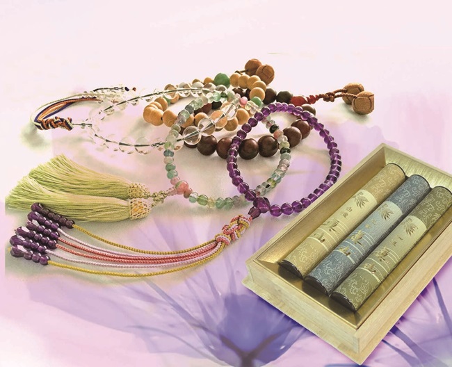 念珠、お線香、仏壇、仏具、お香を取り扱っております。仏壇・仏具のご相談はもちろん、薫り高いお香で豊かなひと時を味わうお手伝いをさせていただきます。