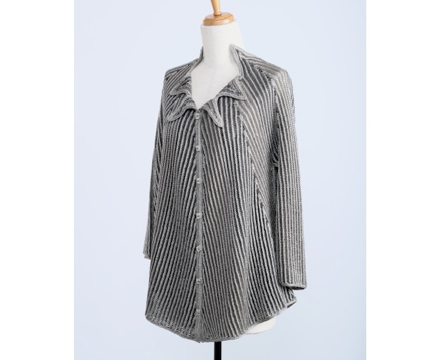 抽象化された図形をニットとして再構築。パターンの立体感や、シルクを中心とした高級素材の風合いを最大限生かすため、100%手編みにこだわりニットやバッグ、帽子等の作品を制作しました。
