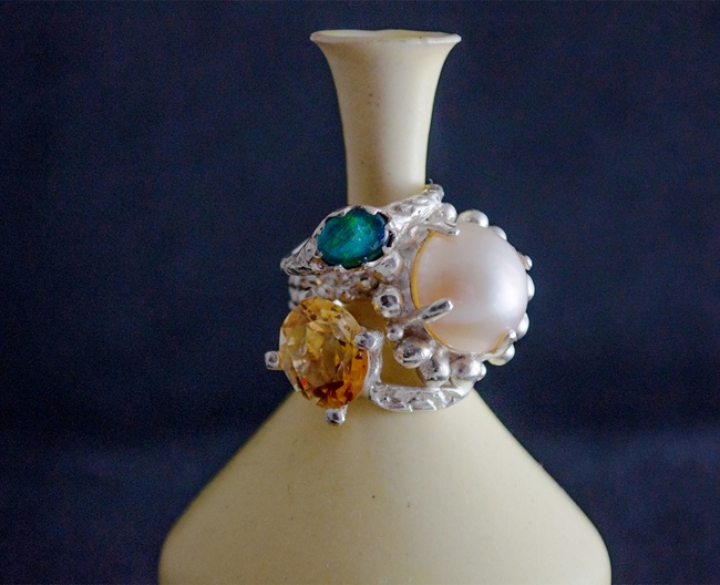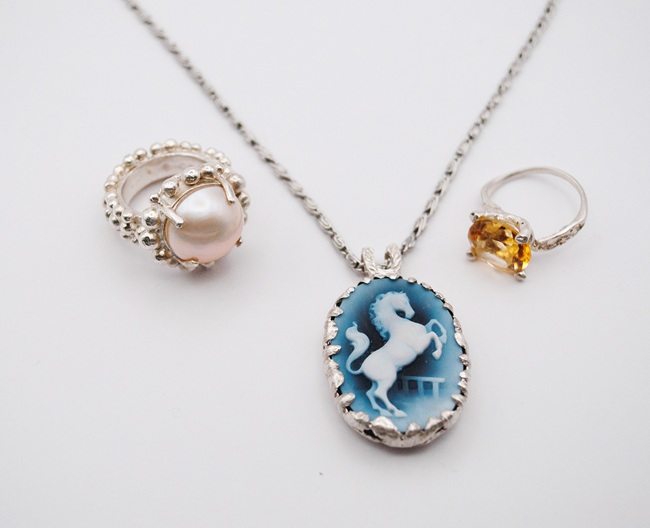 ゴールドやシルバーの彫金と、天然石やヴィンテージカメオ、バロックパールなどを用いたクラシカルで繊細な手作りジュエリーをご紹介。