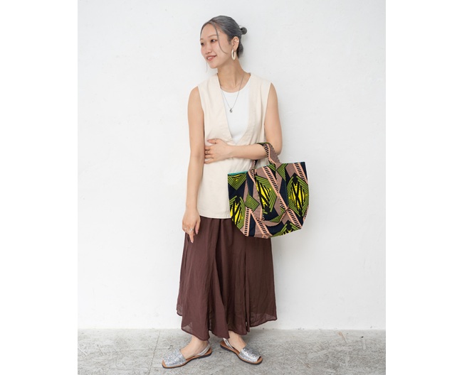 RICCI EVERYDAYは、「“好ましい”より、“好き”を。」を提案。カラフルで遊び心あふれるアフリカンプリントや、アフリカのサステナブルな素材を使用したバッグや洋服、小物を、ウガンダの直営工房で女性たちとともに製作し、ご紹介しています。