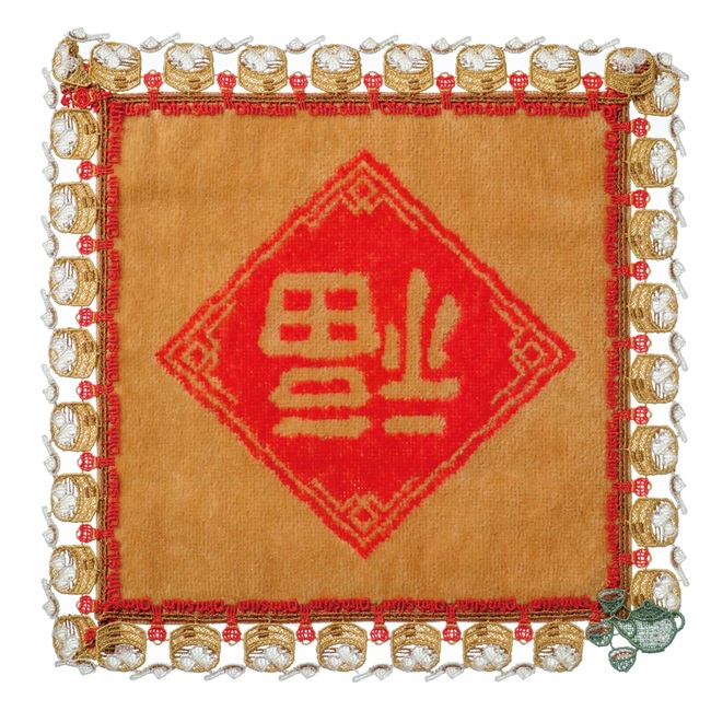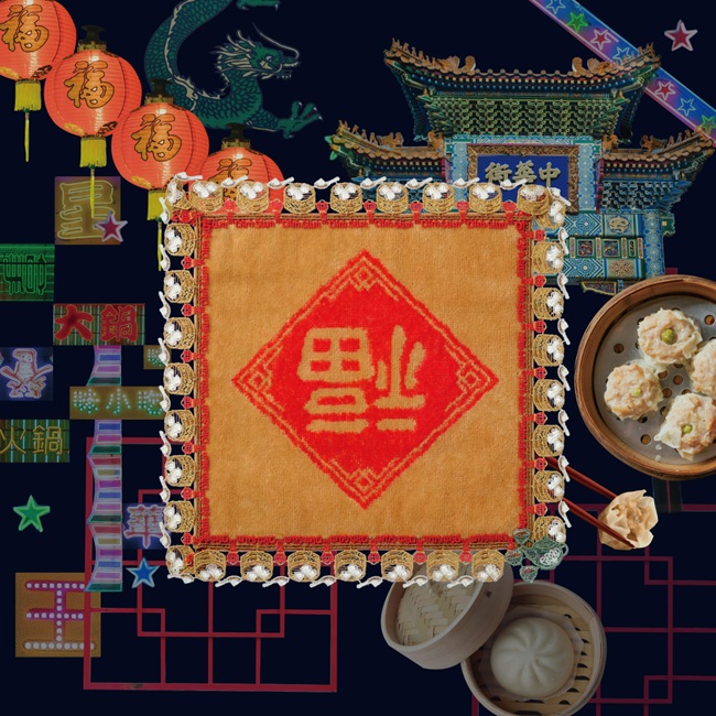 点心は「心に栄養を与えるもの」という意味があります。 門や壁に「福」の字を逆さまに貼る風習には、福が家や店に訪れるようにという願いが込められた言葉遊びも。 そんなおまじないがこもった、洒落のきいた一枚。 家族や友人とおしゃべりをしながら、とっておきの時間をお過ごしください。