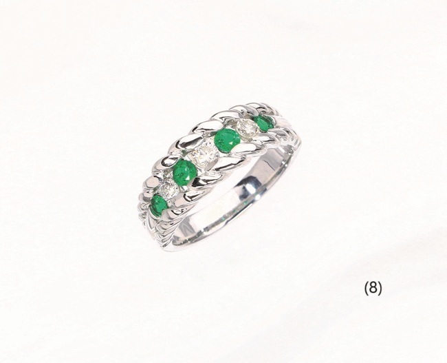 (8) Ptエメラルドダイヤモンドリング(E=計.023ct、D=計0.23ct) 209,000円(現品限り)