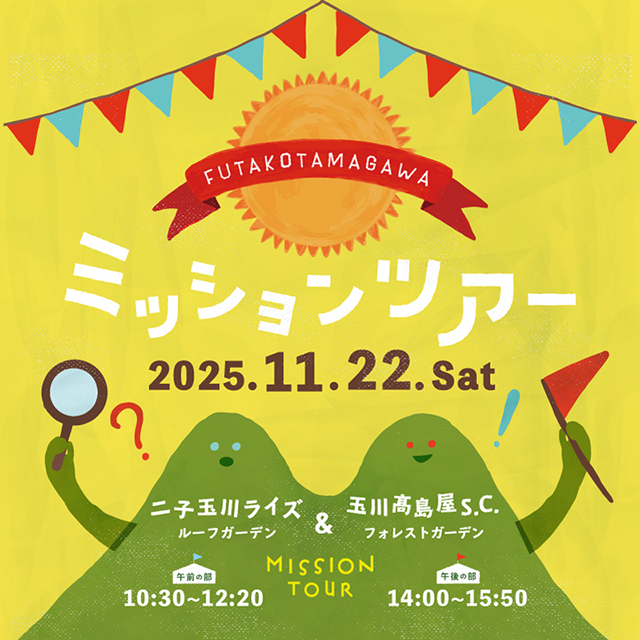 二子玉川ライズのルーフガーデン、玉川高島屋S.C.のフォレストガーデン、2つの庭園をめぐり、二子玉川の身近な自然を五感を使って学べる体験イベントです。