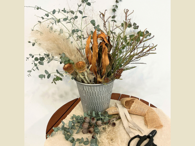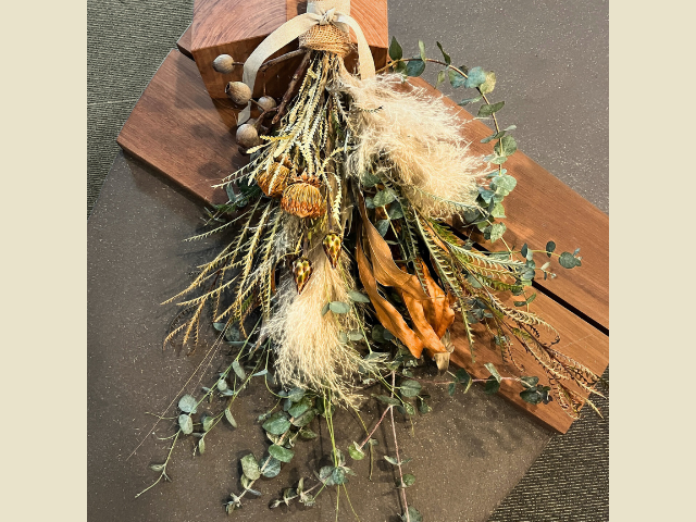 今回は、秋のお花と枝で季節の移ろいを感じさせる「ナチュラルスワッグ」を作ります。